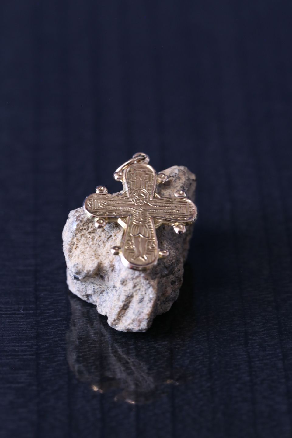 Classic Day of the Dead cross with the suffering Jesus on the front, and the 5 large ones on the back. The Day of the Dead cross is a classic gold piece of jewelry that can be worn by both men and women.