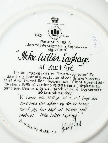 Bing & Grondahl artist platter "Not sheer pie" Artist: Kurt Ard Plate No. 4 Plate No 078 A Factory first Limited edition Beautiful and well maintained