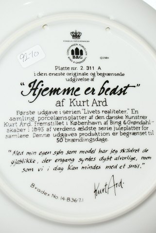 Bing & Grøndahl kunstnerplatte "Hjemme er bedst"