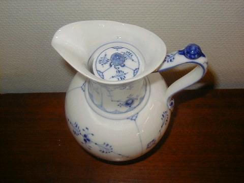 Kongelig Musselmalet Riflet, Chokolade kande med låg Dek.nr. 1/ 482 2. Sortering Højde 23 cm. Flot og velholdt
