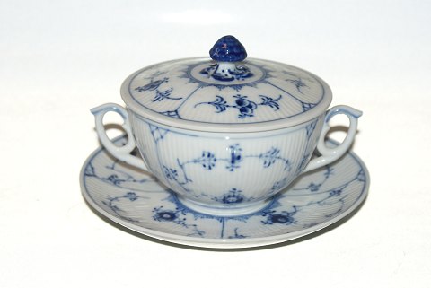 Kongelig Musselmalet Riflet, Bouillionkop Kop, underkop og låg Dek. nr. 1 / 2199 Kop diameter 11 cm. Prisen er for et sæt. Perfekt stand.