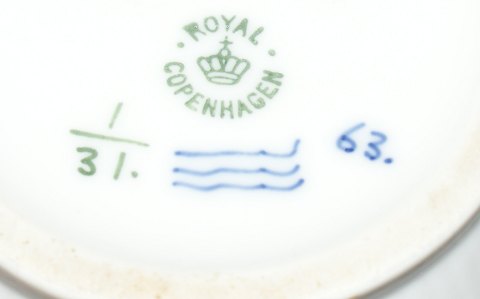 Kongelig Musselmalet Riflet, Sjælden Chokolade kande 4 pægl Modellør C. Stibolt maj 1892 Produceret før 1898-1923 Dek. nr. 1/ 31 1.sortering Højde 23 cm. Flot og velholdt.