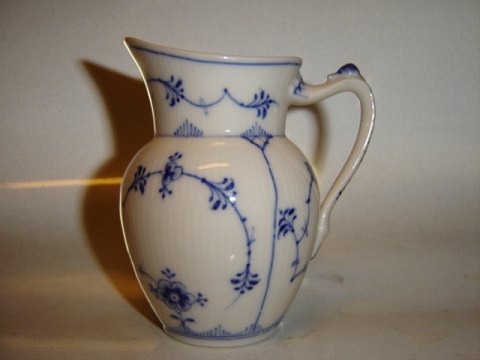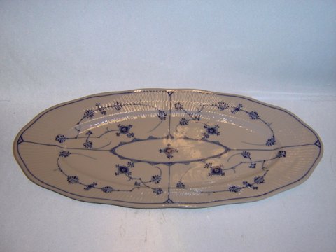 Kongelig Musselmalet Riflet, Sauceskål Produceret 1850-1898 Dekorationsnummer 1/406 1.Sortering Højde 13,5 cm. Længde 20 cm. Perfekt stand.