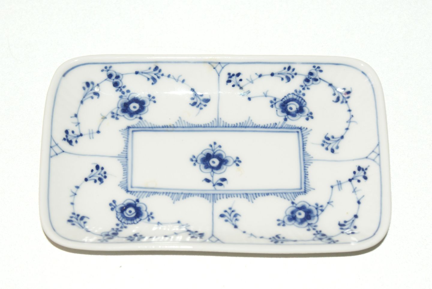 Royal Copenhagen Blue Fluted Plain, Ring Tray Produceret 1923-1934 Modeler J. Jacobsen February 1901 Decoration number 1/477 Factory second Size 13.5 cm x 8 cm. Perfect condition.