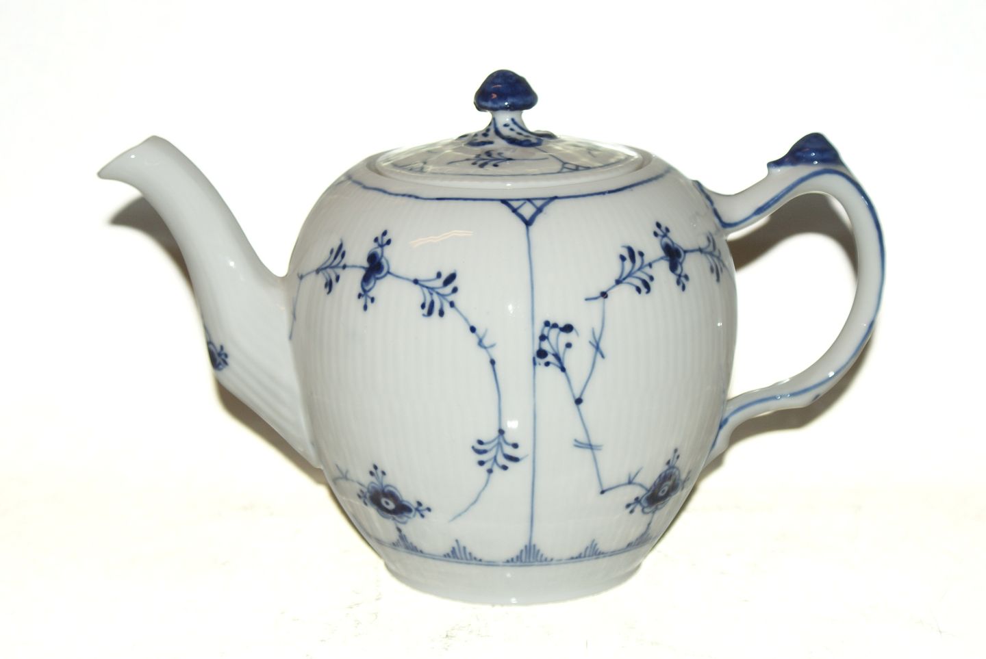 Royal Copenhagen Blue Fluted Plain Large Teapot Decoration number 1/260 Produced between 1898 and 1923. factory 1st quality Length 27 cm. Perfect condition.