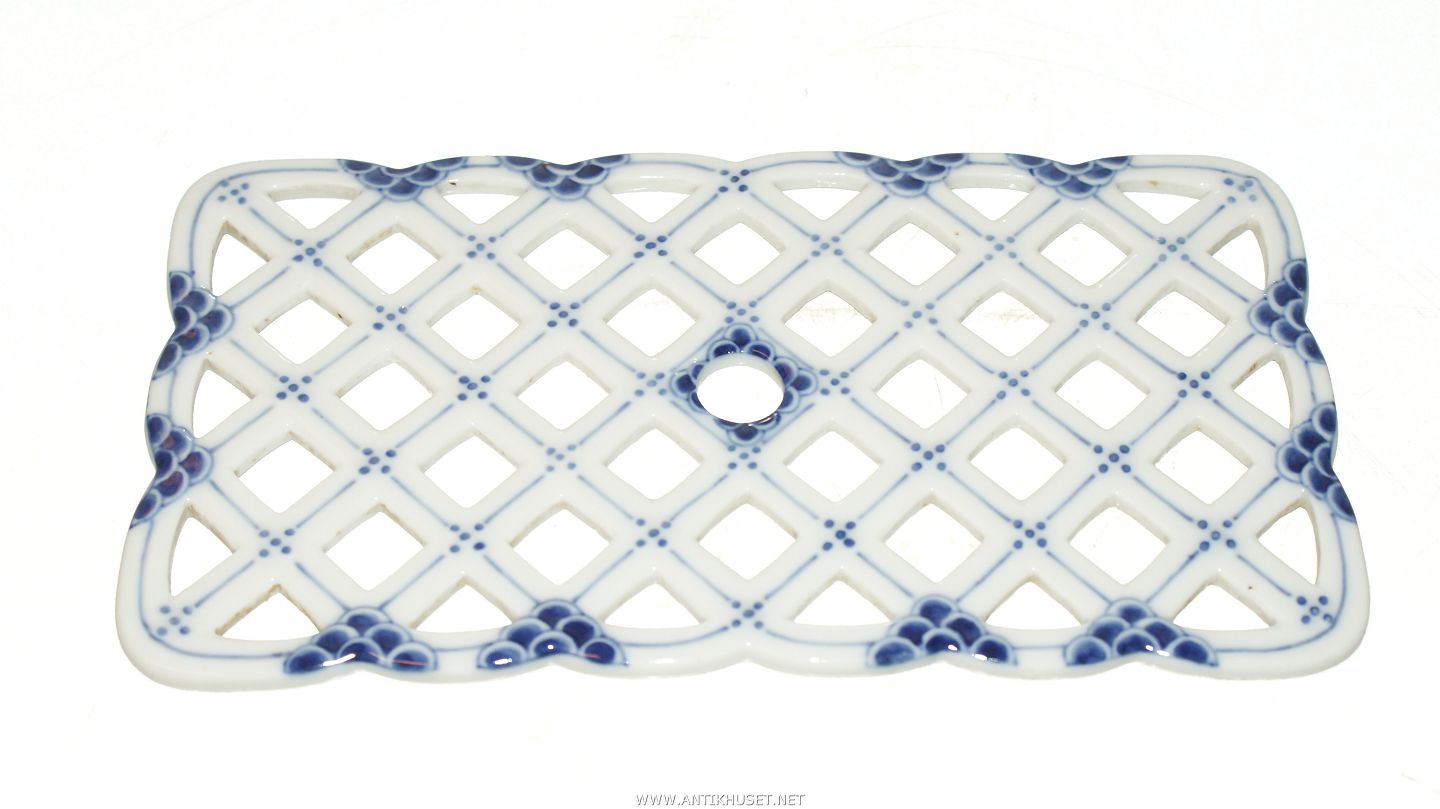 Kongelig Musselmalet Riflet, Rist til Asparges fad Produceret mellem 1898-1923 Dek. nr. 1/303 og 1/635 (Musselmalet Halvblonde) 1.Sortering Længde 23 cm. Bredde 12,5 cm. Perfekt stand.