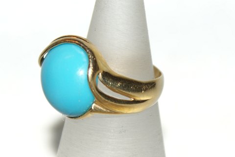 Gold ring with inlaid turquoise, 18 Karat Stamp: 750 Size: 53 / 16.87 mm. No or almost no signs of wear The item is not physically available in the store Contact us for a demonstration