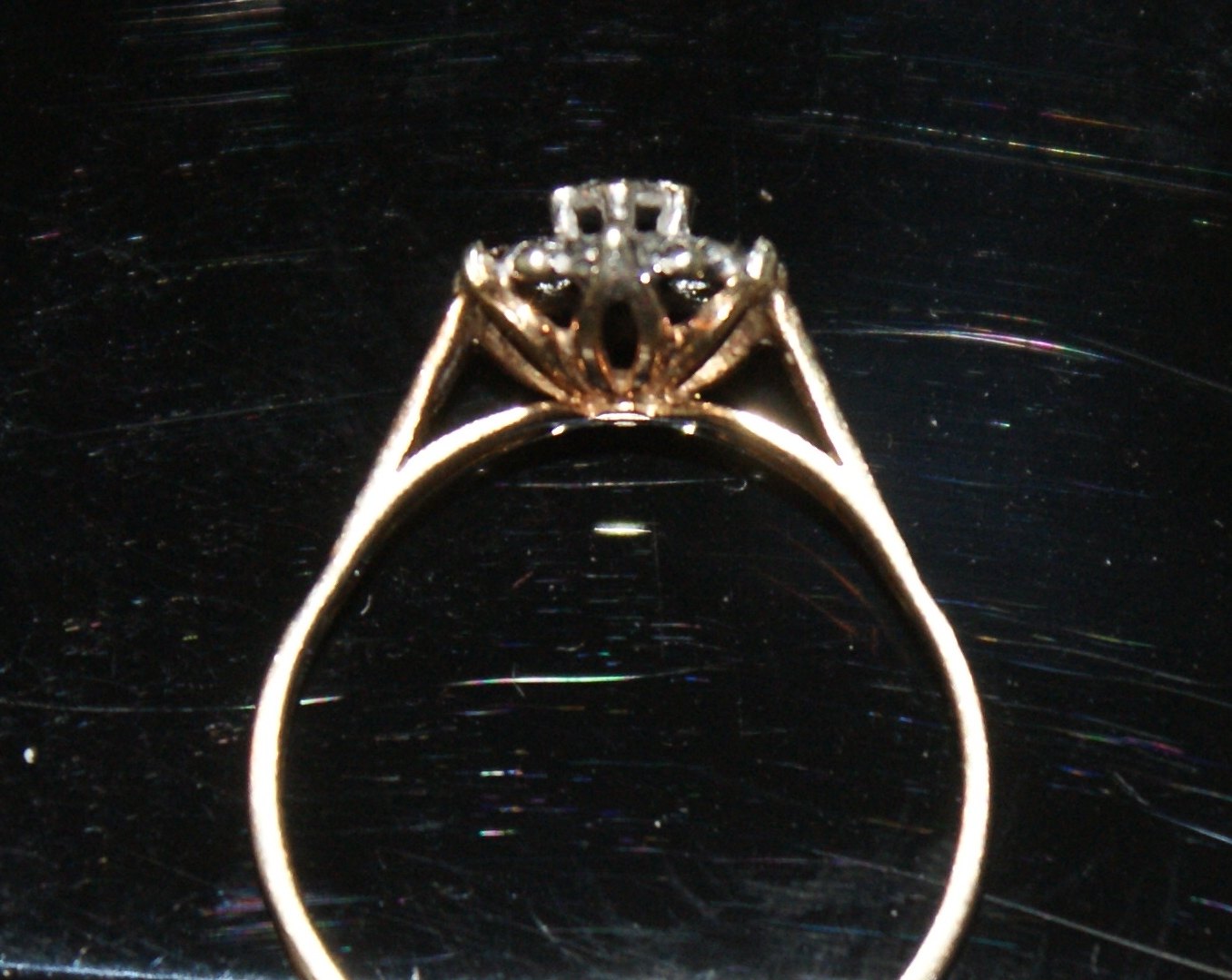 Guldring med Brillanter 9 Karat Stemplet: 375 Engelske stempler Størrelse 56, 17,82 mm. Flot og velholdt stand. Varen findes ikke fysisk i butikken. Kontakt os for fremvisning