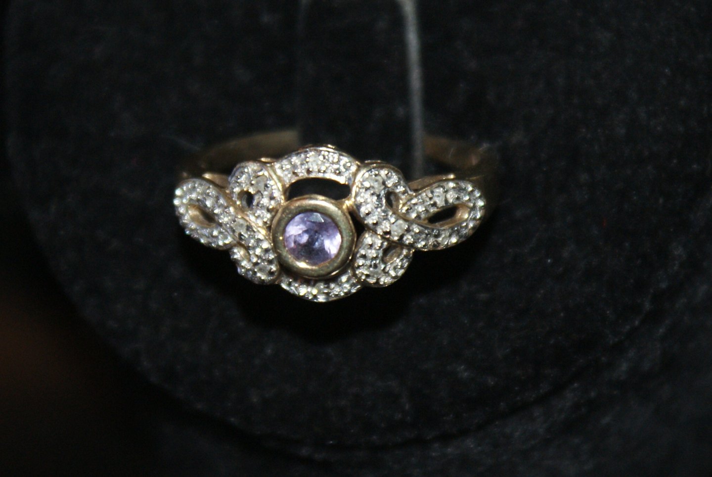 Gold Ring with Amethyst and Diamonds 9 Carat Stamp: Dia. Ring size 58 / 18.46 mm. Well maintained condition The item is not physically available in the store Contact us for a demonstration