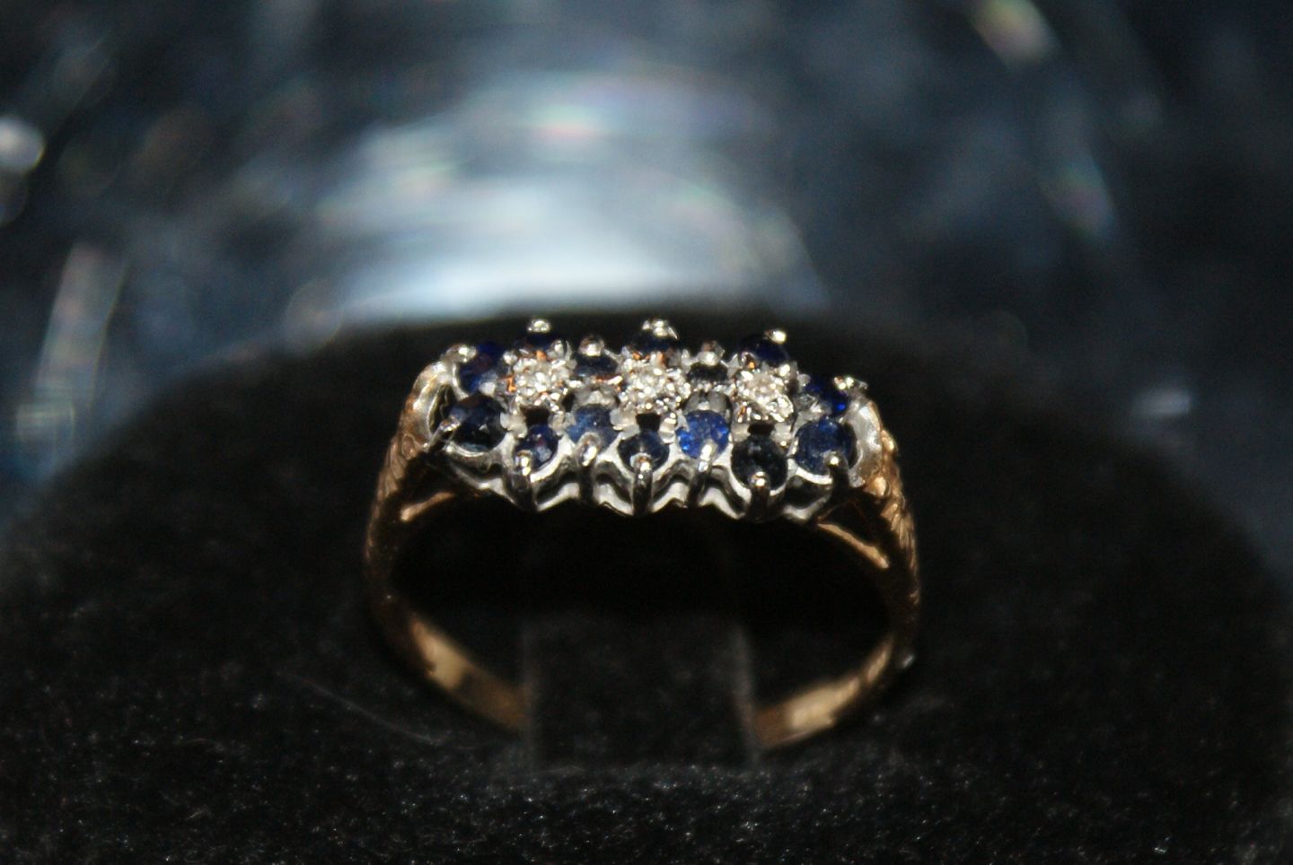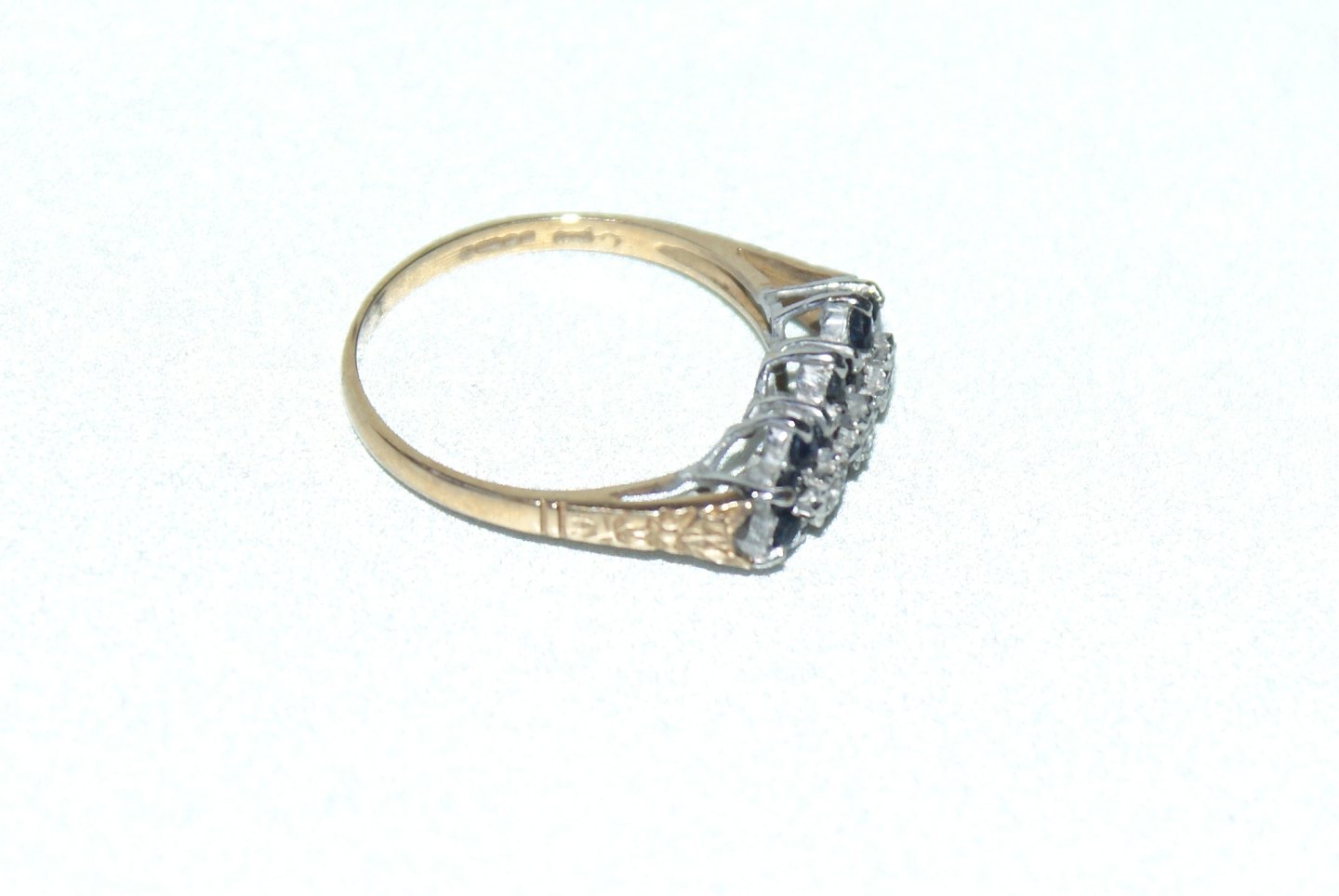 Gold ring with Sapphire and Brilliants 9 Carat Stamp: English stamps Ring size 56 / 17.82 mm. Well kept condition The product is not physically in the store Contact us for presentation