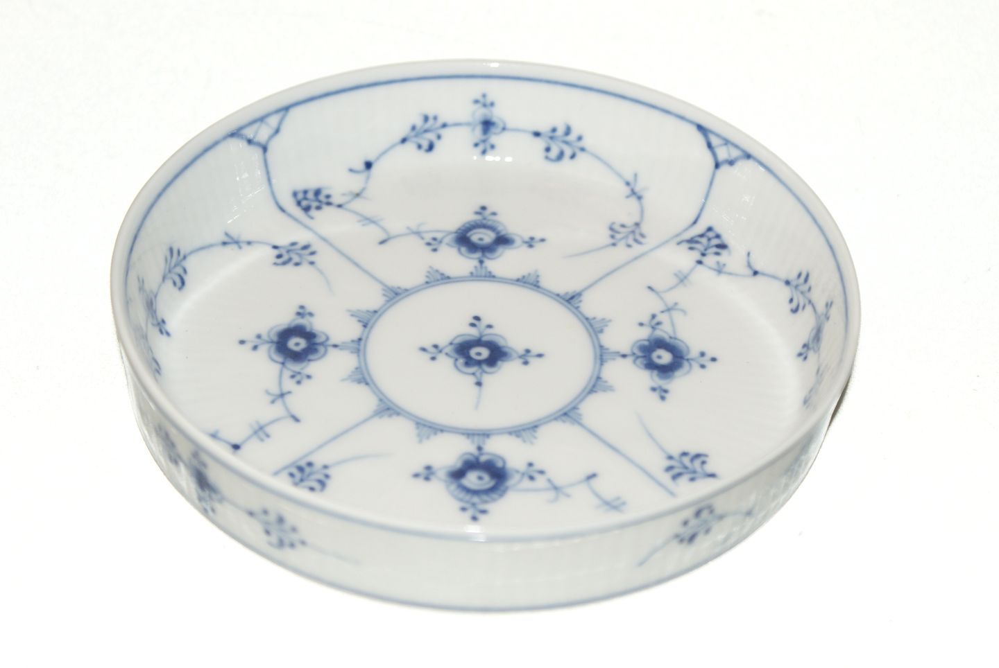 Sjælden Kongelig Musselmalet Riflet, spejlæg fad Produceret mellem 1923-1934 Dek. nr. 1/474 Diameter 14 cm. Perfekt stand