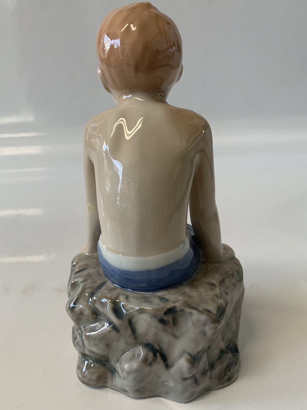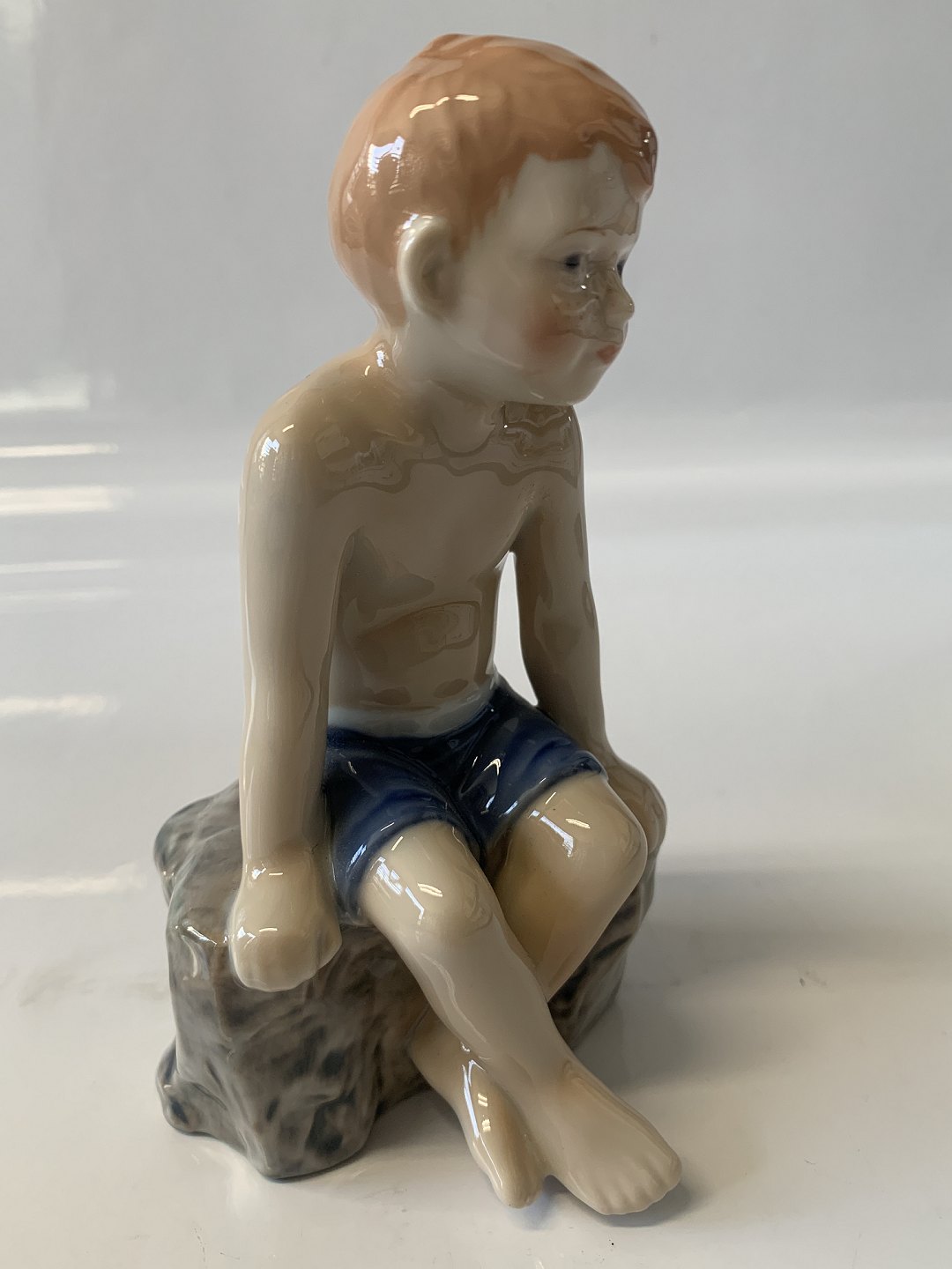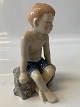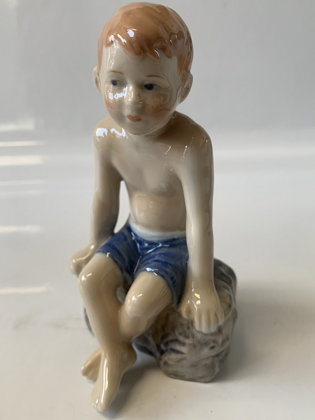 Royal Copenhagen, boy sitting on a rock Decoration Number 682 factory 1st quality Height 14 cm. Beautiful and well maintained
