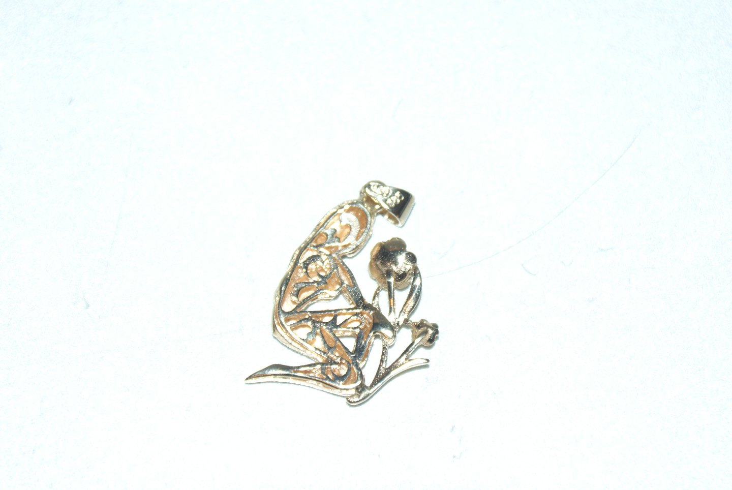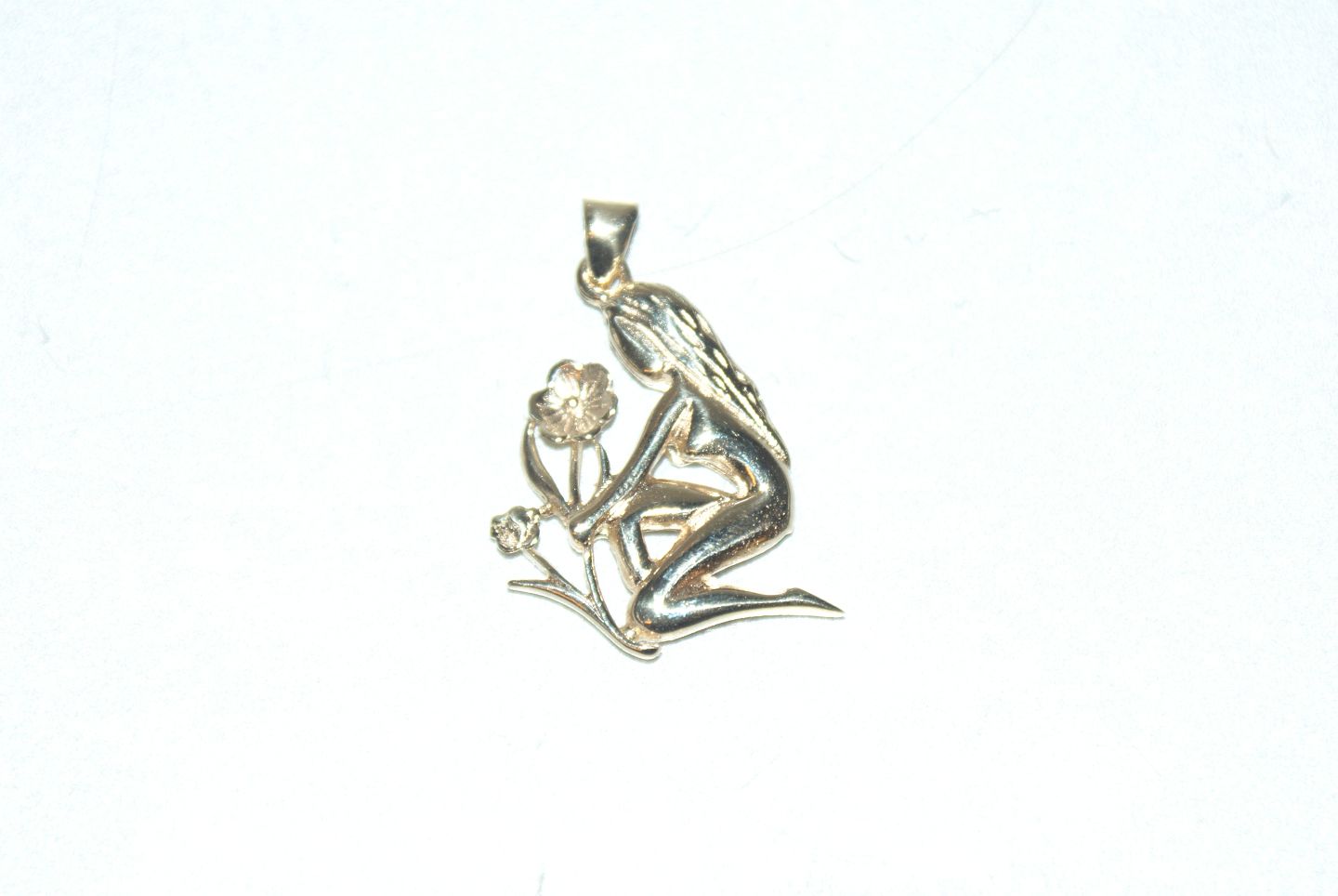 Vedhæng pige med blomst 14 karat guld Stemplet: 585 Højde 33,73 mm Brede 21,71 mm Tykkelse 3,40 mm Flot og velholdt Varen findes ikke fysisk i forretningen Kontakt os for fremvisning