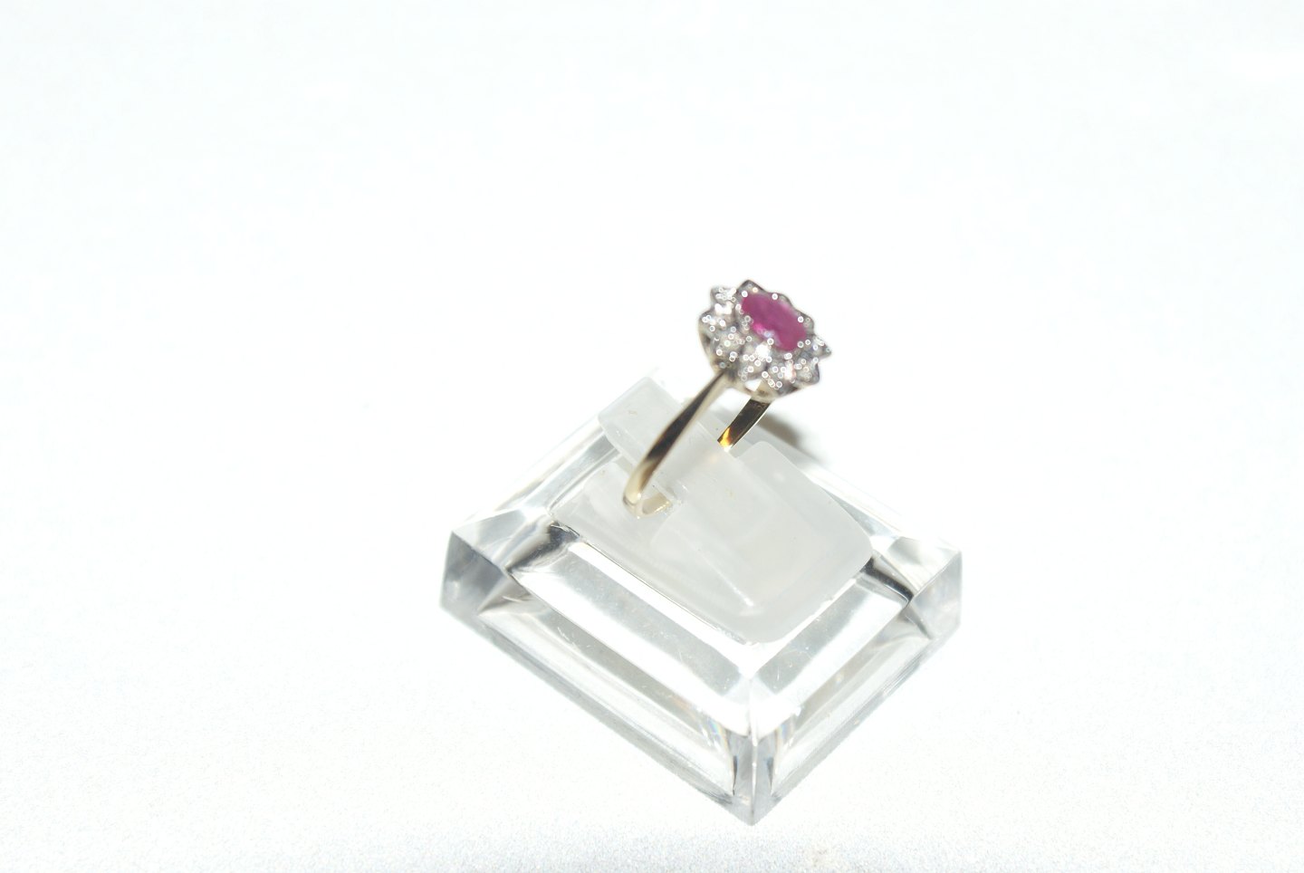 Damering Rubin og brillanter 14 karat guld Stemplet JAa 585 Størrelse 59 Pæn og velholdt stand Varen findes ikke fysisk i butikken Kontakt os for fremvisning