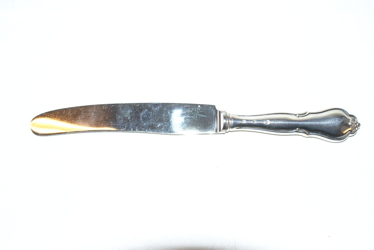Ambrosius Silver Dinner Knife Length 24.2 cm. Well maintained condition Polished and packed in bag https://www.antik-huset.dk/ambrosius-solv-middagskniv-3448.html