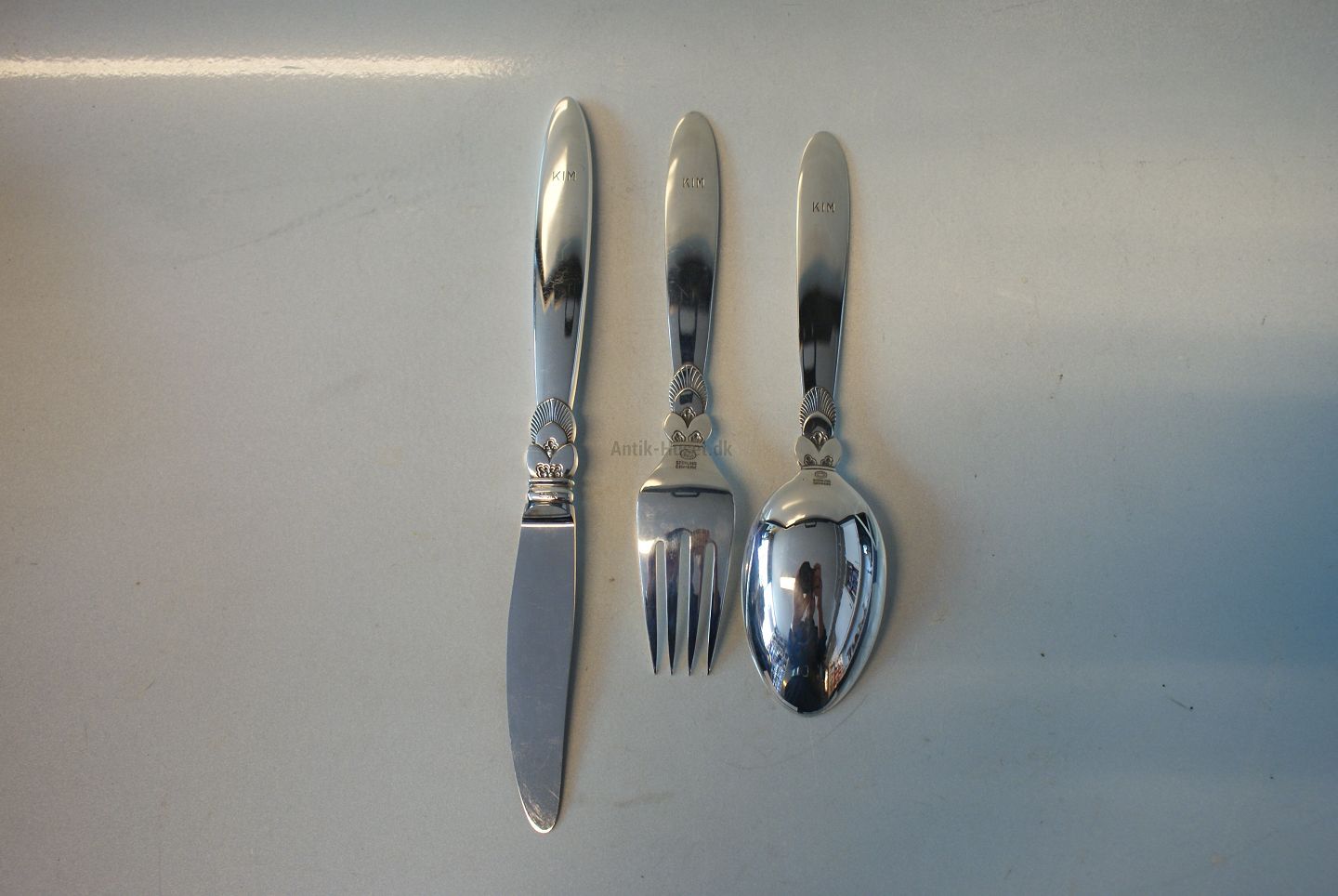 Kaktus Frokost bestik Sølv graveret kim Fremstillet hos Georg Jensen. Gundorph Albertus 1930 Kniv Længde 20 cm. Gaffel Længde 16,5 cm. Ske Længde 17 cm. Gravering: KIM Flot og velholdt stand