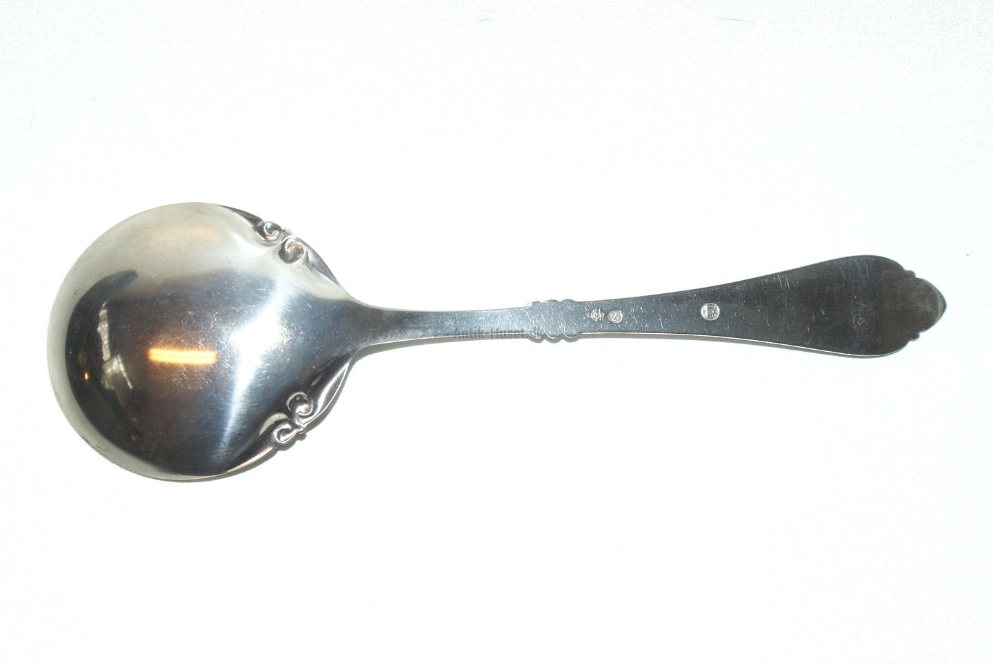 Jam spoon Freja sølv Length 12.5 cm. Beautiful and well maintained The cutlery is polluted and packed in a bag.