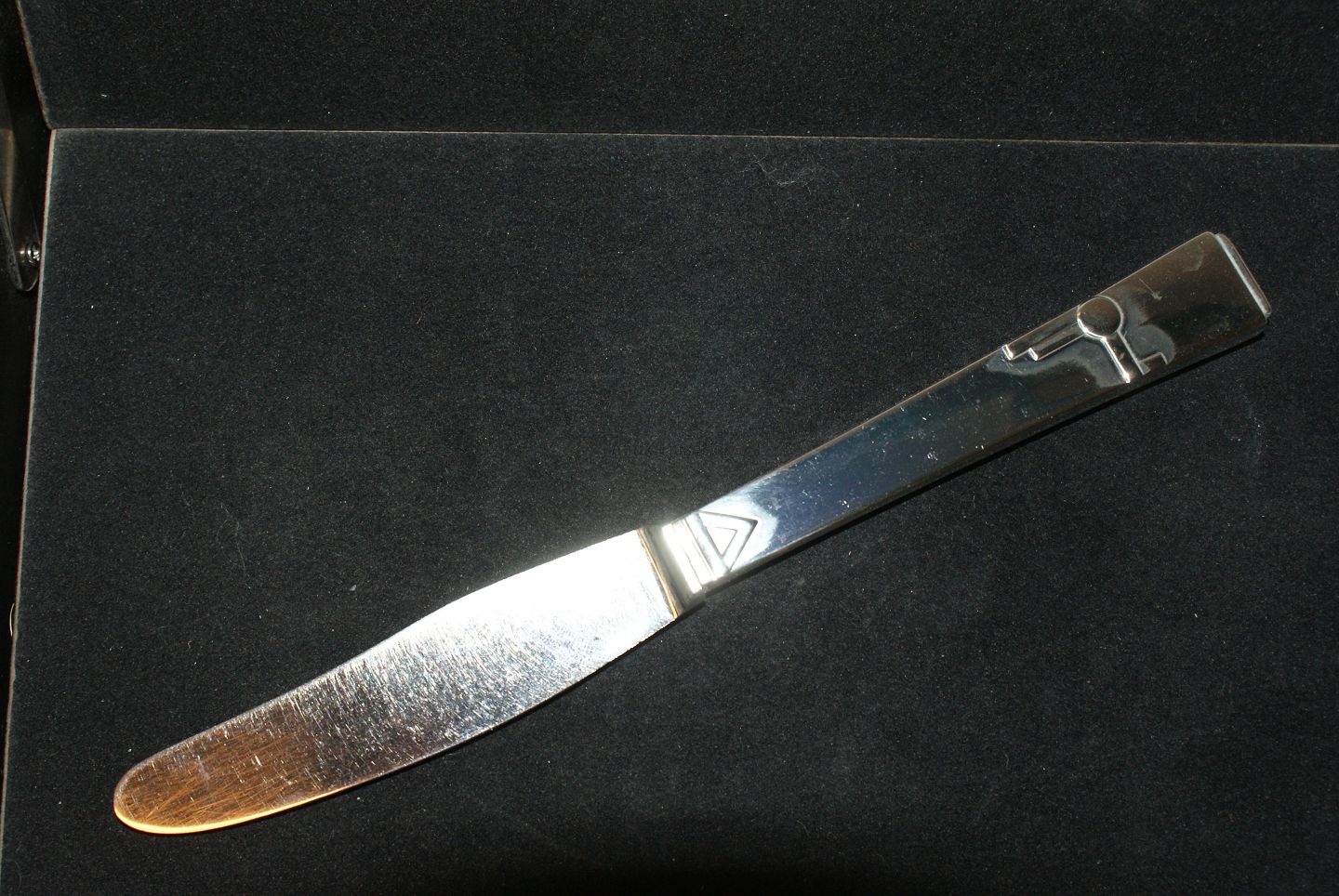 Dinner Knife Funkis 2 Silverware Length 21.5 cm. Well maintained condition The cutlery is polished and packed in a bag.