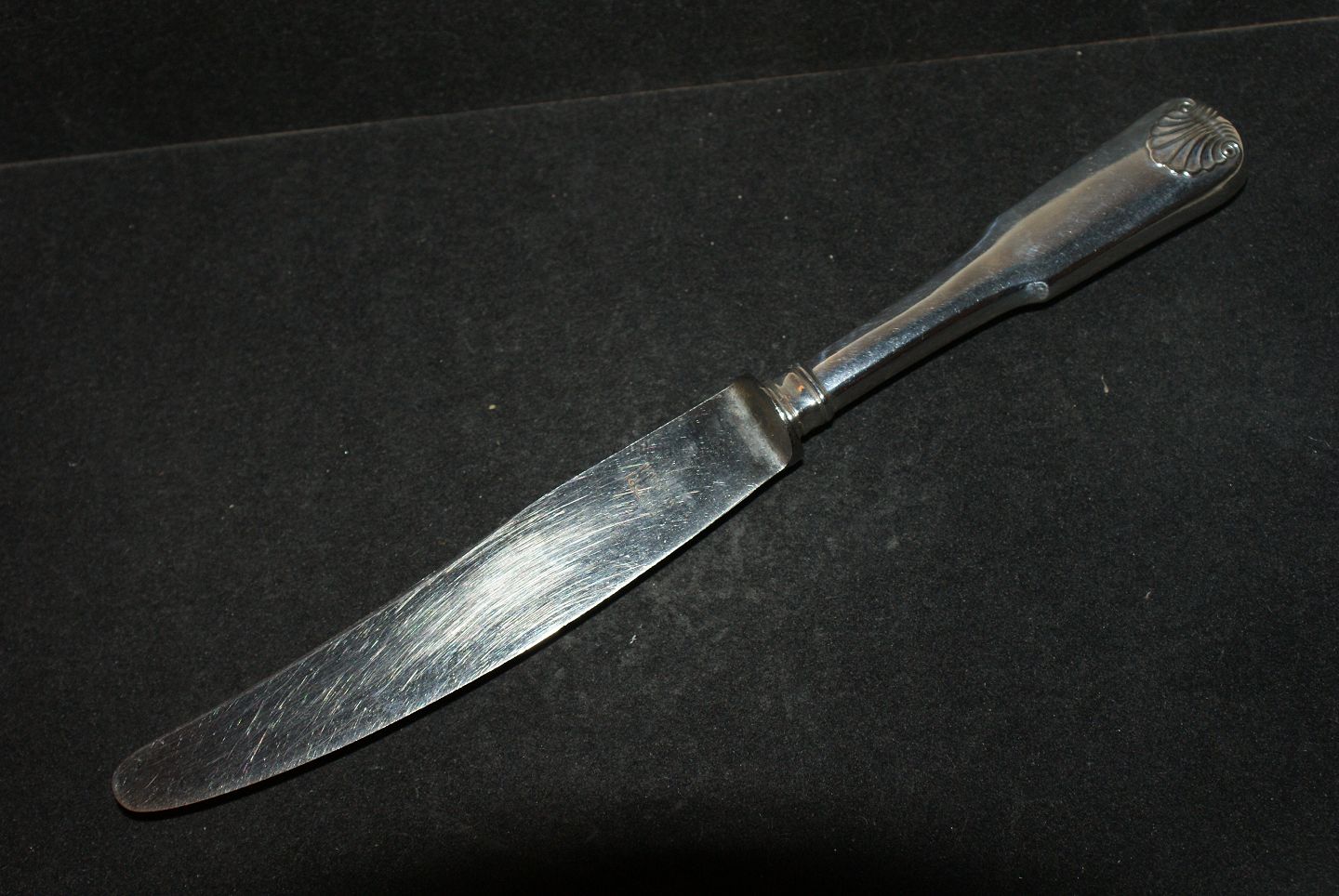 Dinner Knife Mussel Silver Fredericia Silver, W & S.Sørensen. with more Length 20.5 cm. Polished and packed in a bag Used, Beautiful and well maintained.