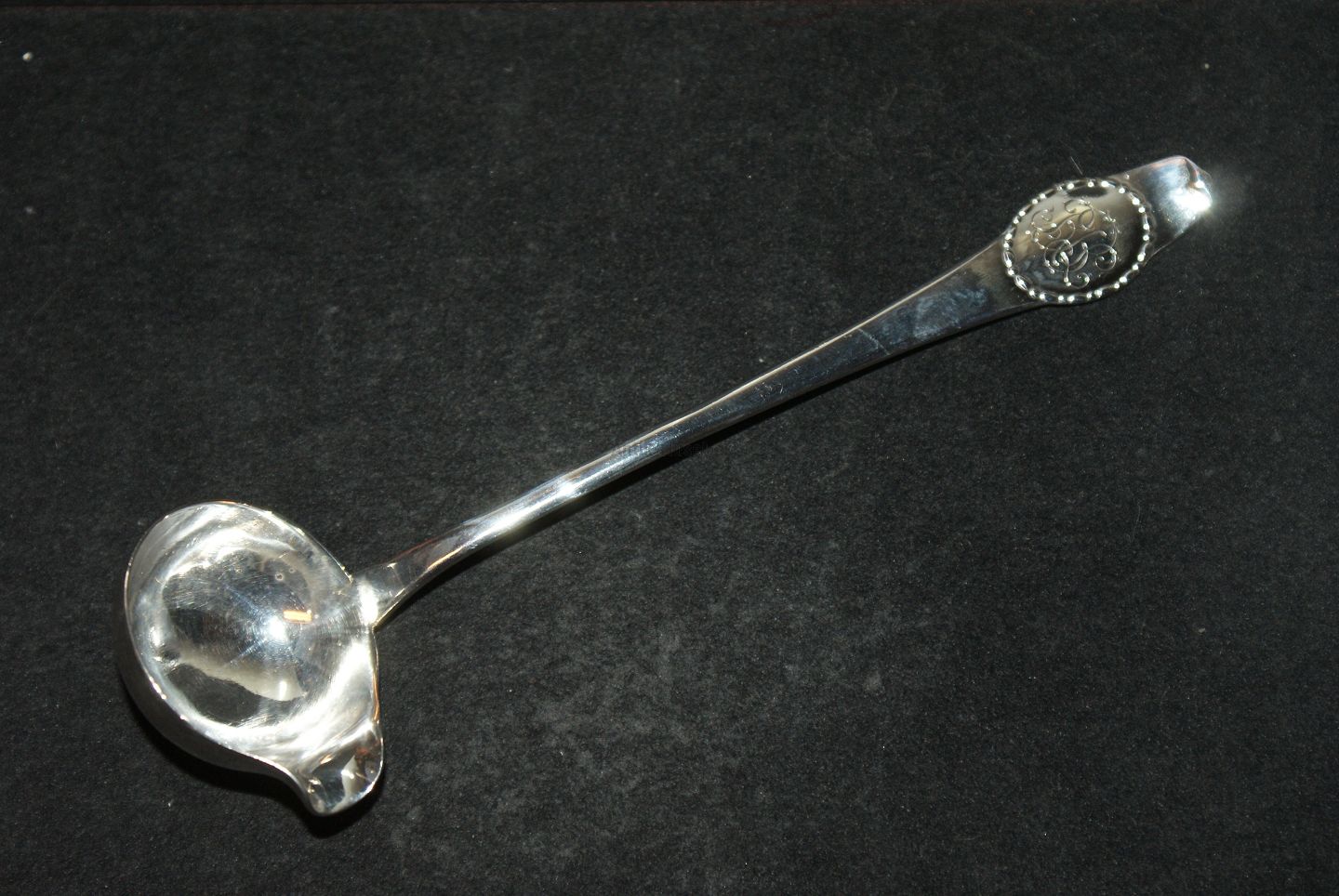 Flødeske Medallion Sølv med graveret intialer Fredericia Sølv Længde 14 cm. Brugt og velholdt. Alt bestik er poleret og pakke i pose