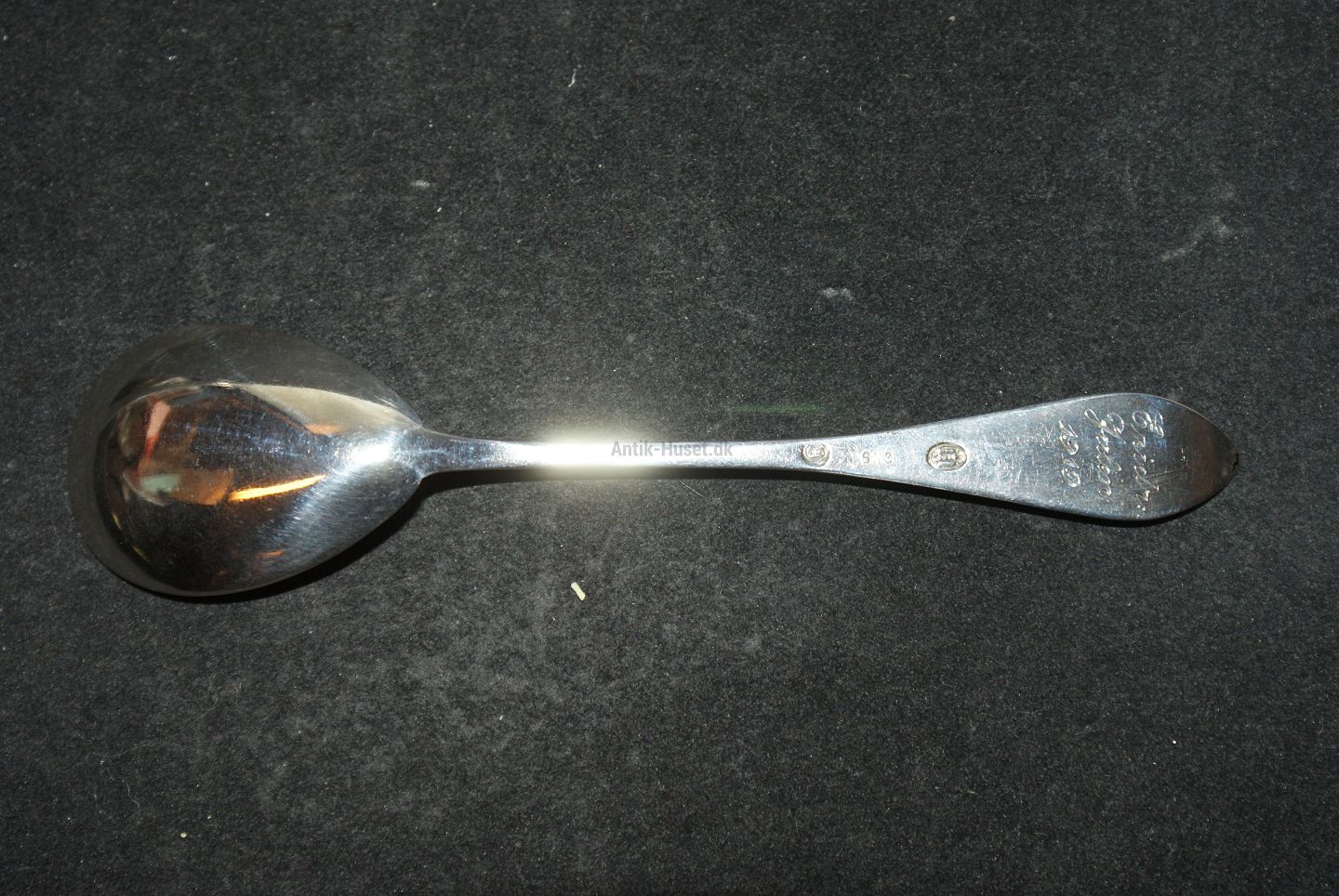 Jam spoon New Pearl Series 5900, (Pearl Edge Cohr) Danish silver cutlery with engraved initials