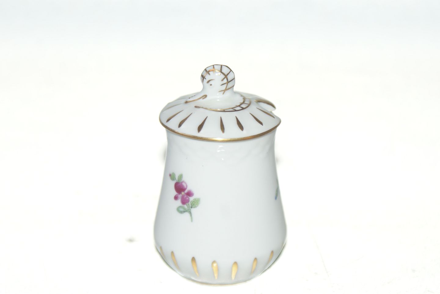 Bing og Grøndahl Hvid Saksisk Blomst, sennepkrukke Dek nr 52 c 1.sortering. Flot og velholdt stand. Ingen eller næsten ingen brugs slidtage Blomstermotiverne er forskellige fra genstand til genstand