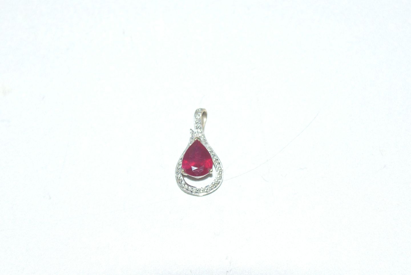 Vedhæng med rød sten og Diamanter 9 karat guld Højde 23,69 mm Brede 12,76 mm Pæn og velholdt stand Varen er tjekket af guldsmed og findes ikke fysisk i butikken, så kontakt os for yderligere oplysninger eller fremvisning