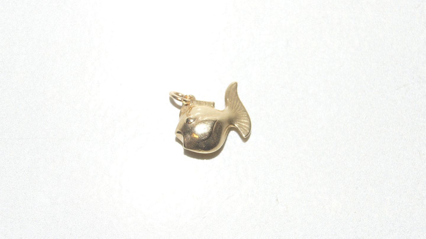 Fisk Charms / Vedhæng i 14 karat guld Stemplet 585 Højde med øsken 18,10 mm Pæn og velholdt stand Smykket tjekket af guldsmed Varen findes ikke fysisk i butikken, kontakt os for fremvisning.