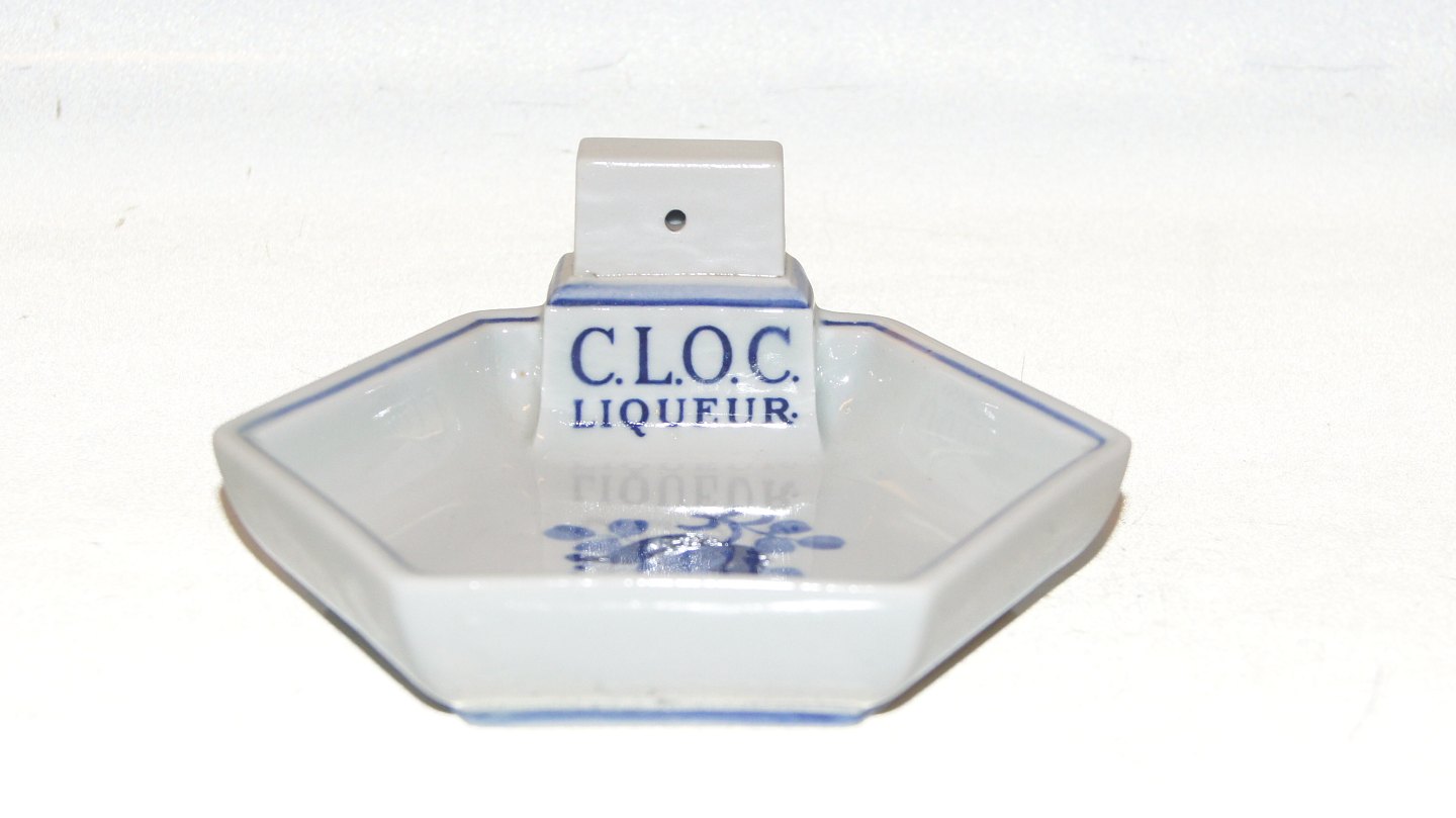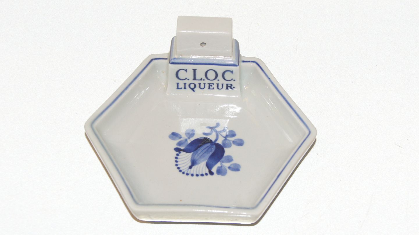 Aluminia Tranquebar, C.L.O.C. Liqueur holds to a matchbox.