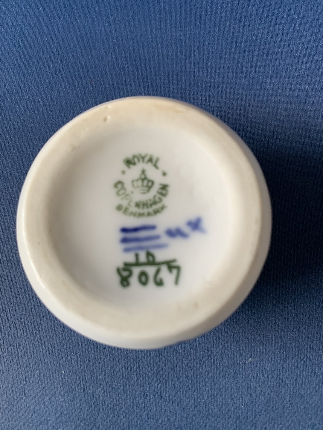 Royal Coenhagen Blå Blomst Flettet, Rundt Saltkar Dek. nr. 10/#8067 Modellør: J.Jacobsen Juni 1903 1. Sortering Diameter 4,5 cm. Pæn og velholdt stand