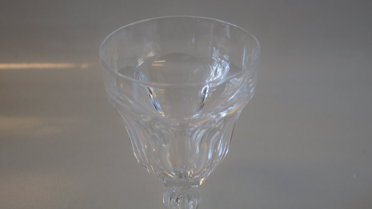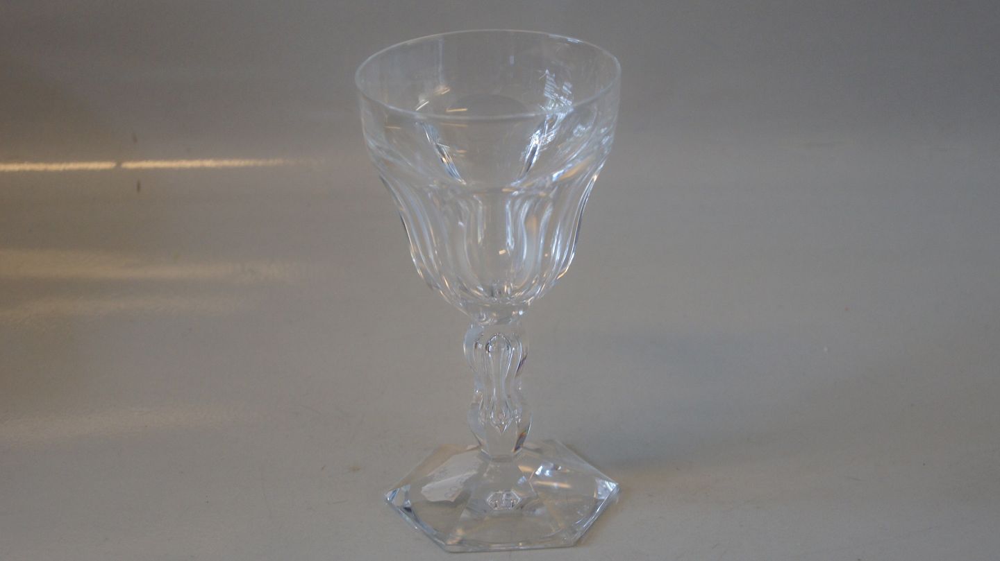Rødvinglas #Lalaing Krystal glas Lalaing krystal glas med facetslibninger, sekskantet fodplade. Produceret på Holmegaard glasværk 1916-1920 på licens fra det Belgiske glasværk Val. St. Lambert. Højde 15 cm Pæn og velholdt stand
