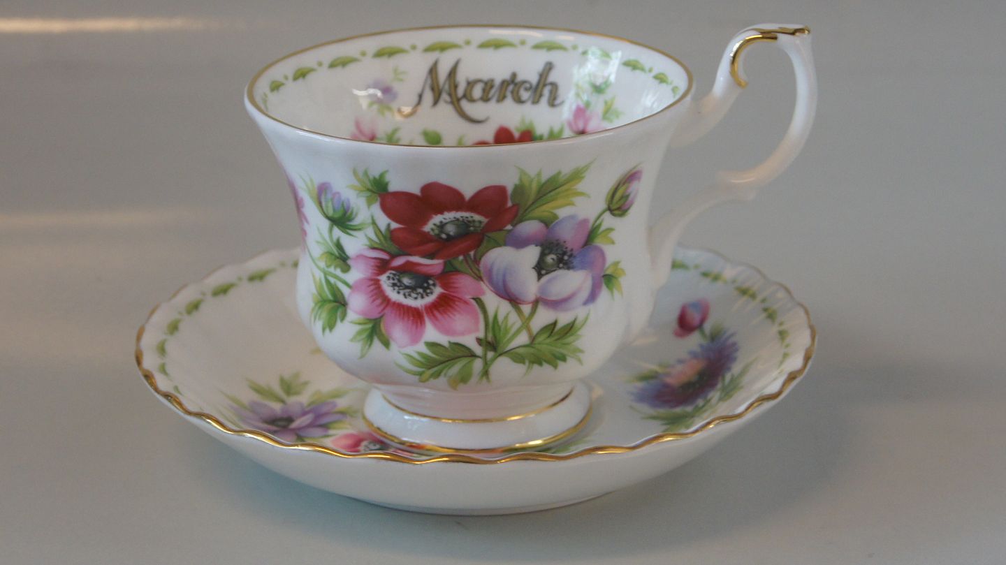 Kaffekop med underkop "Marts" Royal Albert Månedstel
