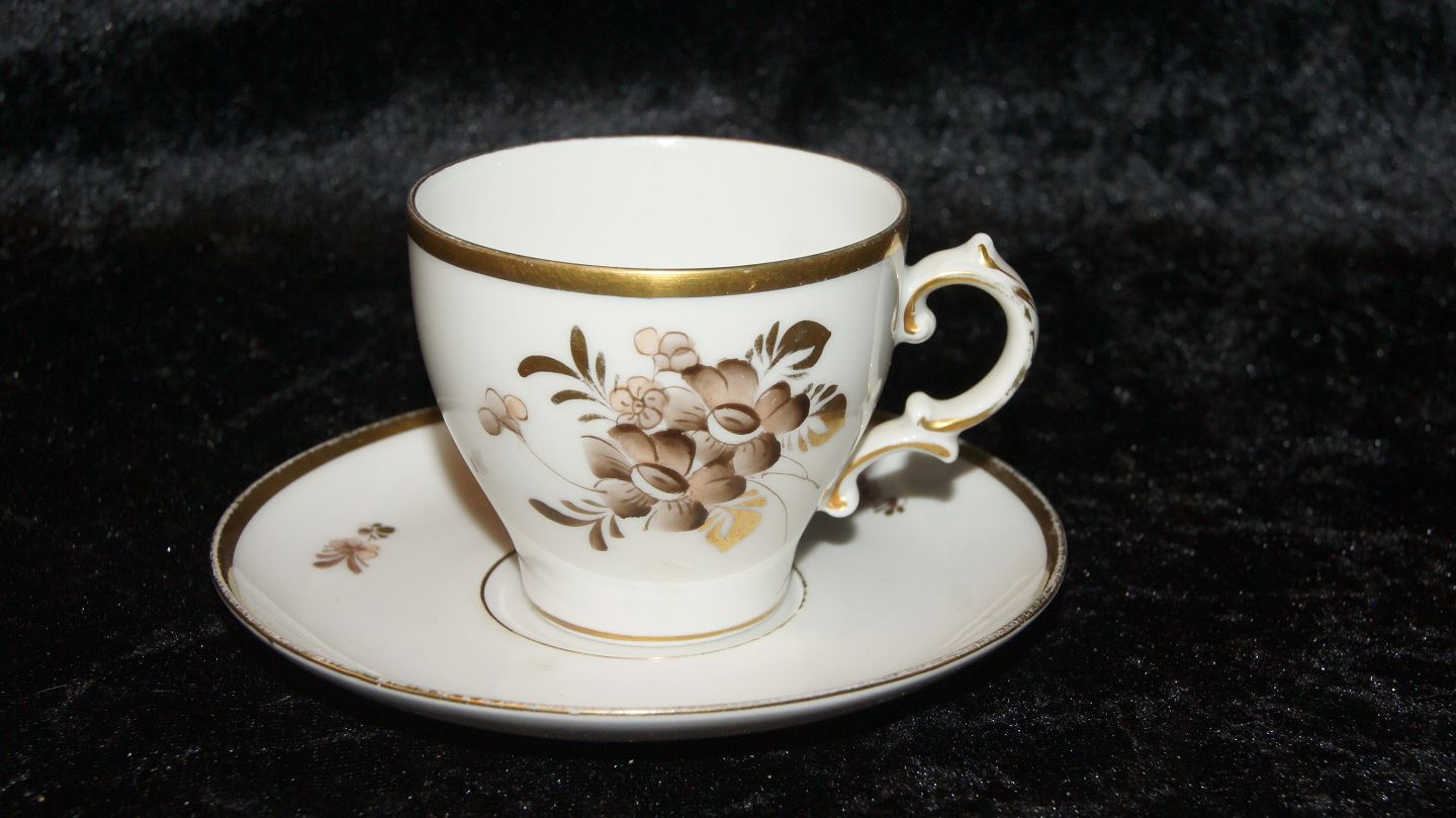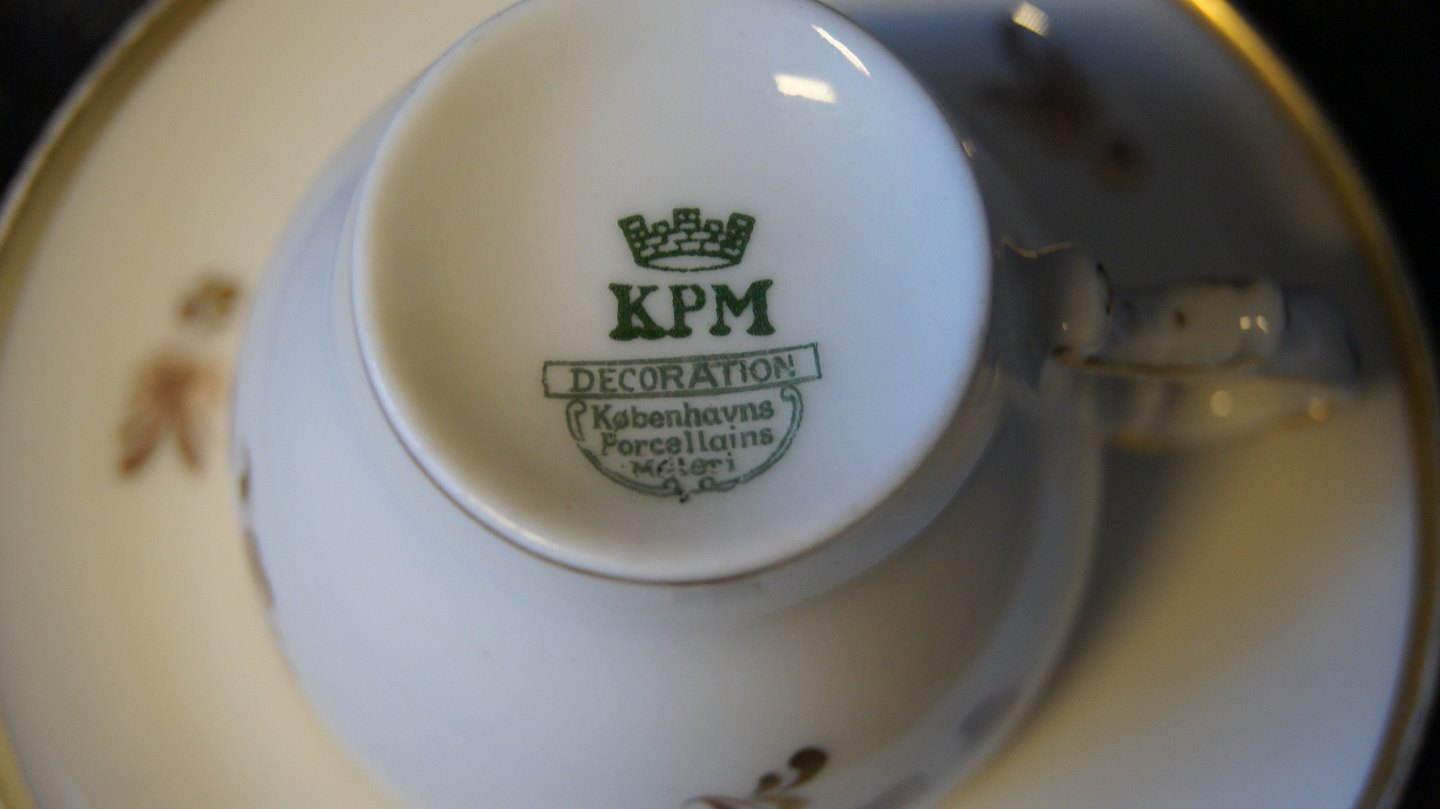 Coffee cup with saucer #Brun Rose # Copenhagen's porcelain factory Height 6.3 cm With wear in gold edge