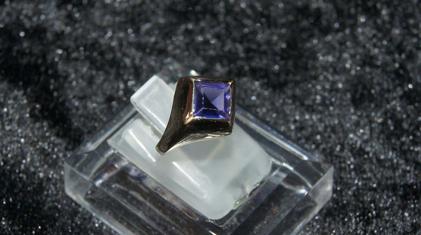 Elegant Ladies' ring with blue stones in 14 carat gold
