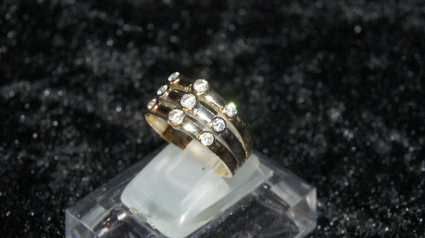 Elegant Damering med sten i 14 karat guld Stemplet 585 ARR Størrelse 55 Pæn og velholdt stand Smykket er tjekket af guldsmed Varen findes ikke fysisk i butikken, kontakt os for fremvisning