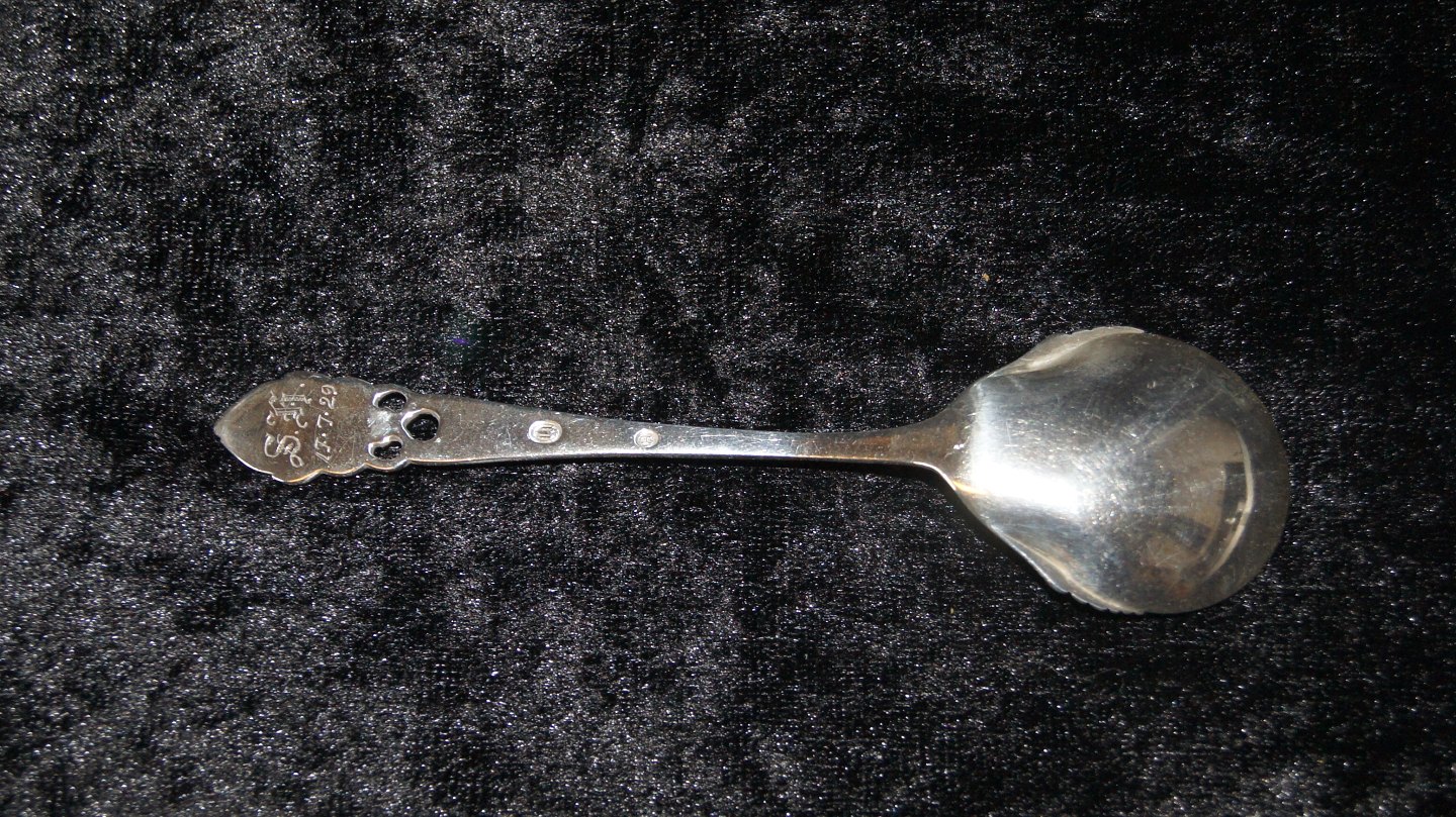 Kompotske #Sølv med graveret initialer Længde 13,2 cm ca Poleret og pakket i pose Brugt, Flot og velholdt.