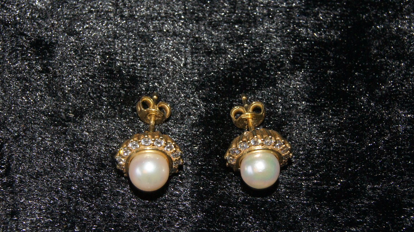 Elegante Øreringe i 8 karat Guld med zikoner og hvis perle