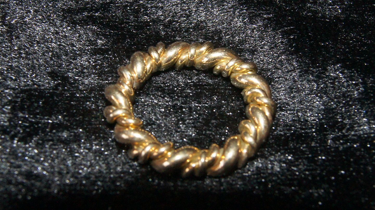 14 Karat Ladies Ring in solid gold and twists. Stamped 585 Size 51 Nice and well-maintained condition Checked by jeweler, The item is not physically available in the store, contact us for viewing.