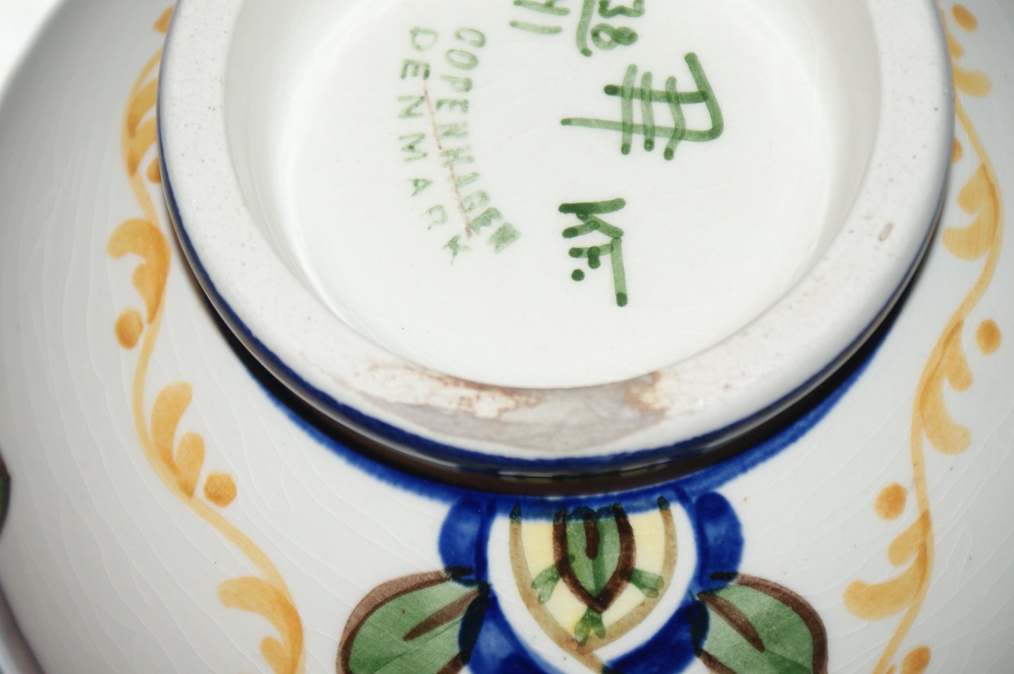 Aluminia Vase decorated with apples. Decoration number 1038/841 and is from approx. 1914 Beautiful colors. Height 17 cm. Well maintained condition, however, reperation on the underside of base.