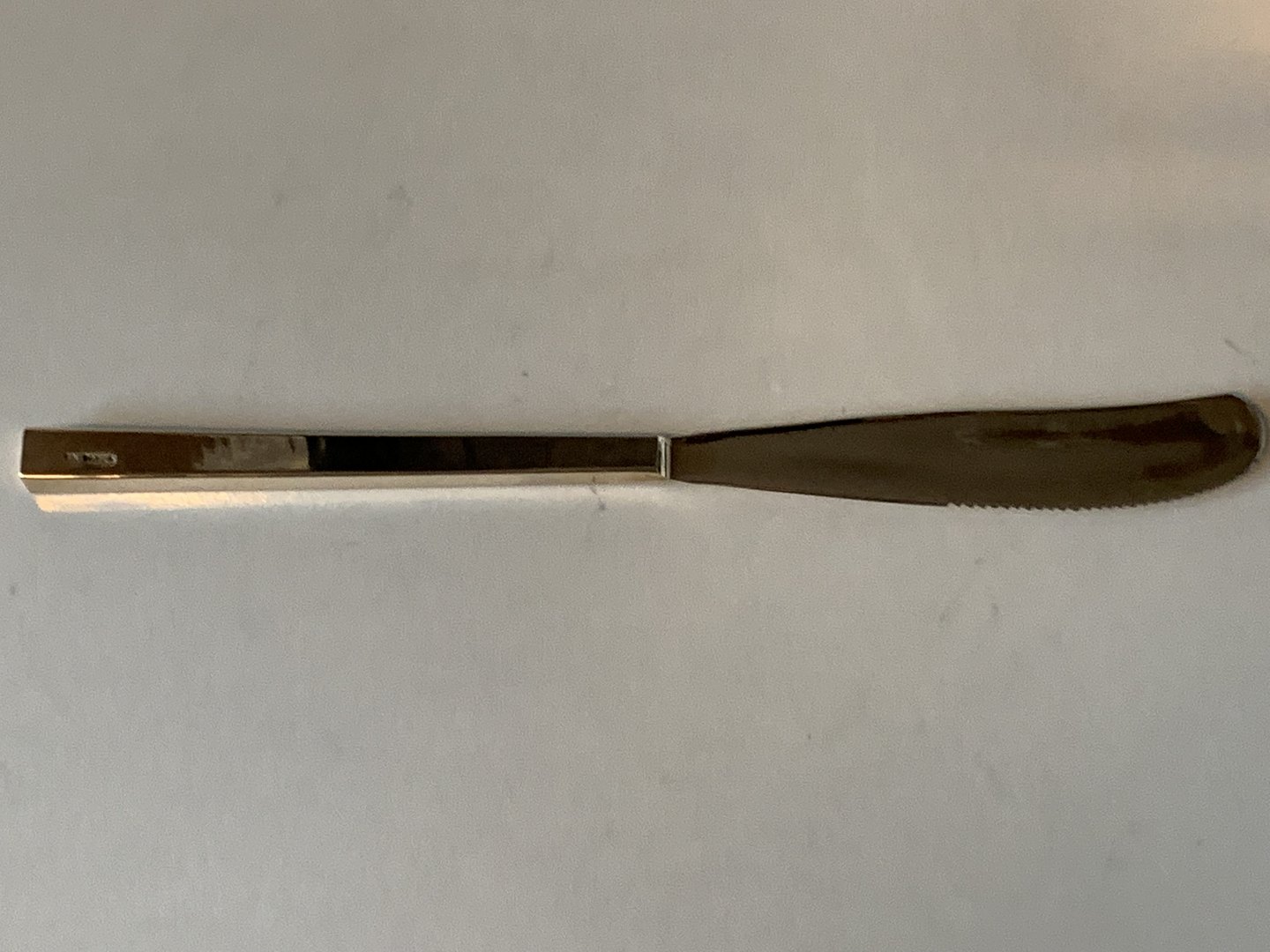 Scanline Bronze,#Middagskniv Designet af Sigvard Bernadotte. Længde 21,4 cm ca Med patina - men i pæn stand.