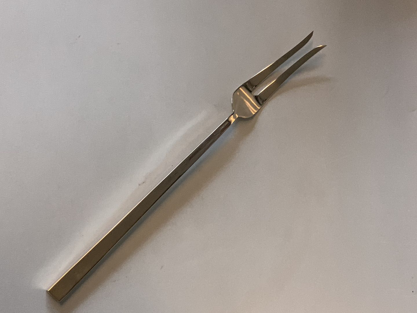 Scanline Bronze, Kødgaffel Designet af Sigvard Bernadotte. Længde 26,6 cm ca Pæn og velholdt stand Med patina