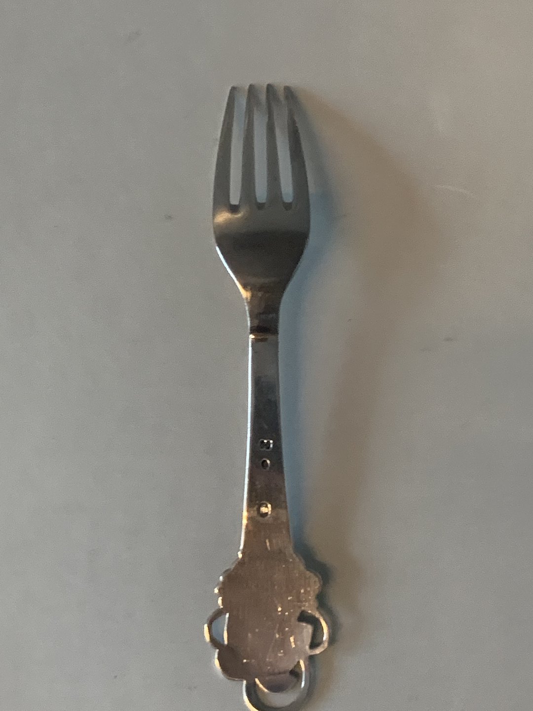 Grape vine Children's fork in Silver and steel Stamped Three Towers, CMC Stainless Length 15.7 cm. No engraving Used but well maintained.