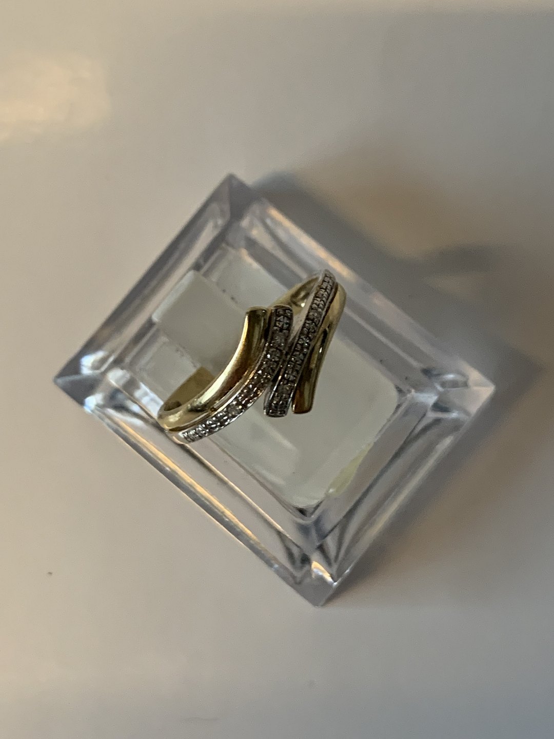 Damering med brillanter 14 karat rød / hvidguld Stemplet JAa 585 Størrelse 58 Tjekket af guldsmed Flot og velholdt stand. Varen findes ikke fysisk i butikken. Kontakt os for fremvisning
