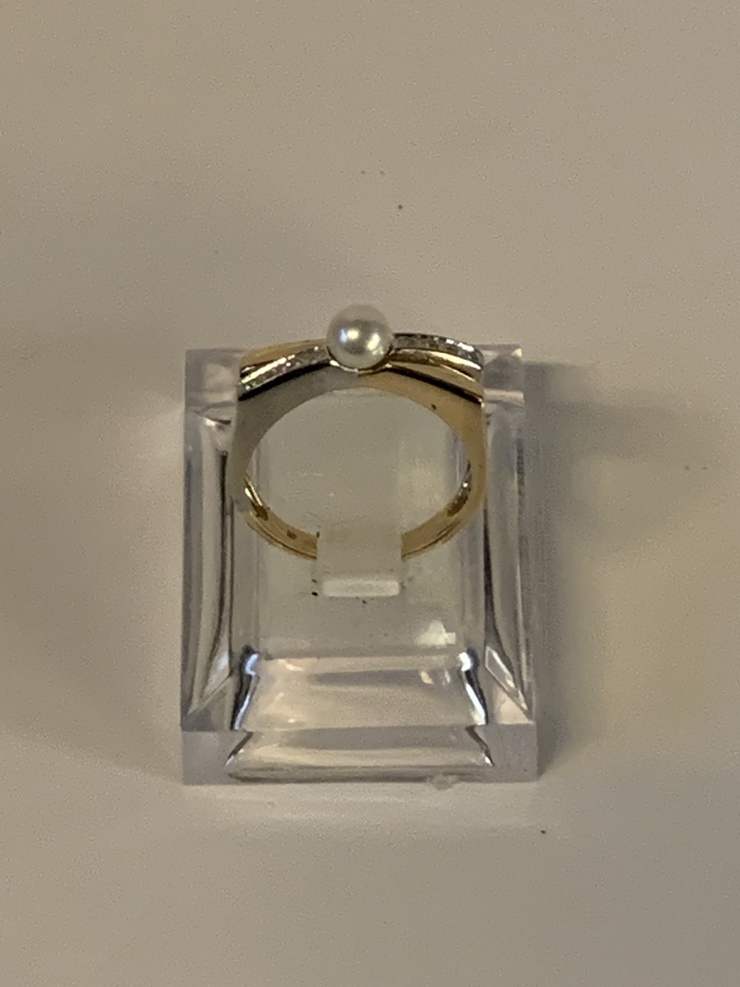 Damering med brillanter og en perle i 14 karat rød /hvidguld Stemplet BEE 585 Størrelse 55 Tjekket af guldsmed Flot og velholdt stand. Varen findes ikke fysisk i butikken. Kontakt os for fremvisning