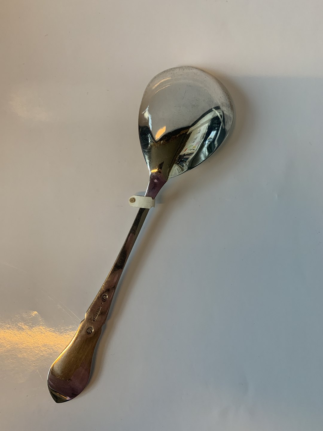 Potato spoon in Silver Stamped: HCF and O. Møller Length 22.5 cm approx Nice condition and packed in a bag