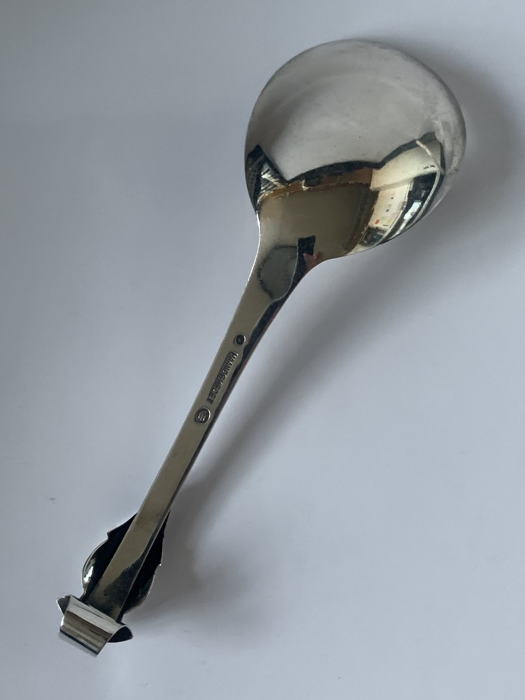 Serving spoon in Silver Stamped : 3 towers hand forged Produced: 1947 Length 20.3 cm approx Nice condition and packed in a bag