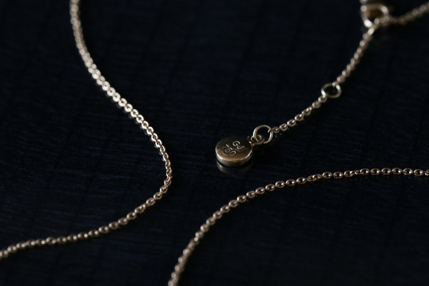 Halskæde fra Georg Jensen i 18 karat guld med karabinlås, stemplet GJ 750. Kæden er tynd og diskret omkring halsen, hvilket giver et smukt look. Halskæden kan hænges dobbelt omkring halsen, eller som en enkelt vinding så den hænger ned over brystet.