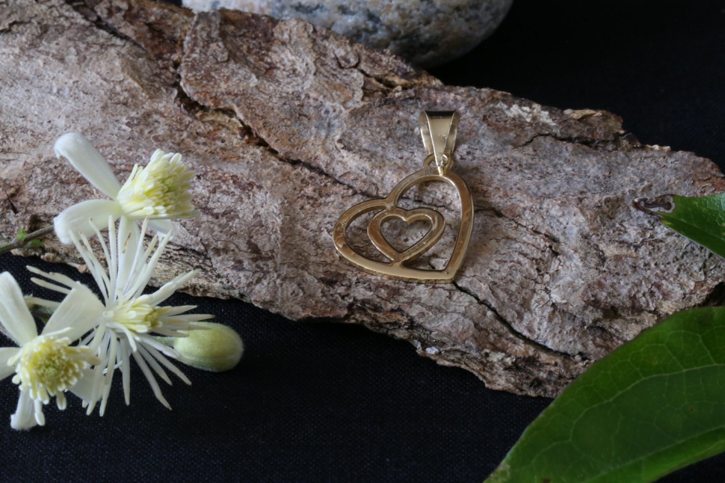 Dette smukke simple vedhæng i 14 karat guld, er formet som et dobbelthjerte, og er romantisk og smukt. Det passer perfekt i en halskæde, og er en ideel gave til den unge pige. Vedhænget er udført detaljeret, og er simpelt men samtidig blikfængende.
