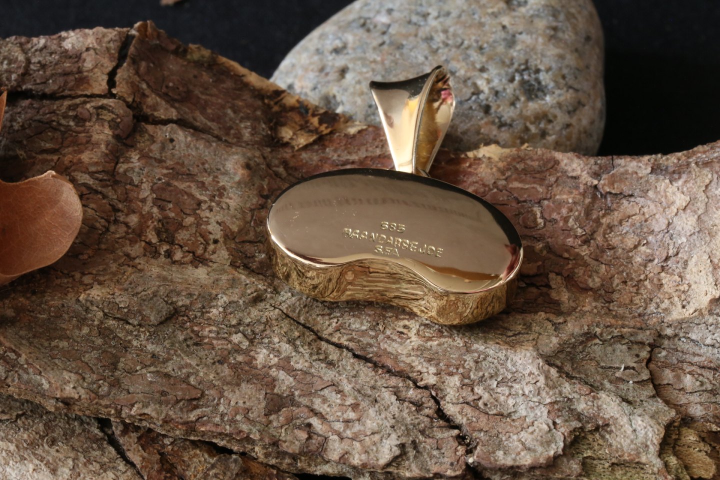 This pendant is designed with chisels, so it forms a unique and special piece of jewelry. It is in 14 carat solid gold, and can be used as a necklace or pendant for a bracelet. If you want something like no other, choose this pendant.