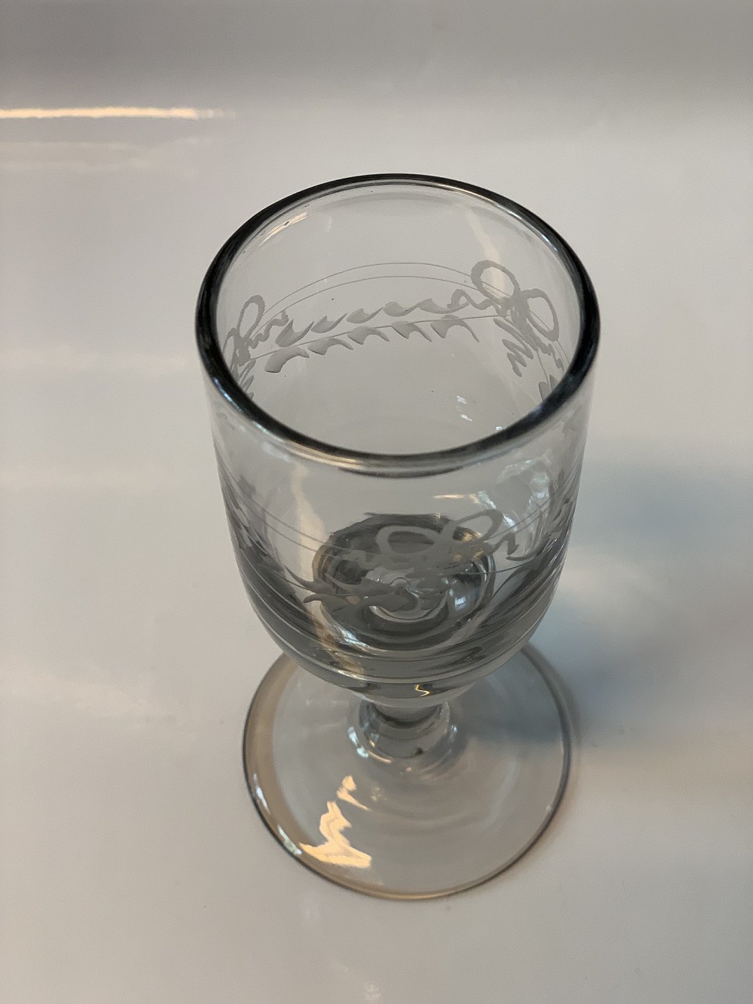 Glass of Port wine Smoke colored with shading Height 12 cm approx Wide 4.6 cm in dia Nice and well maintained condition